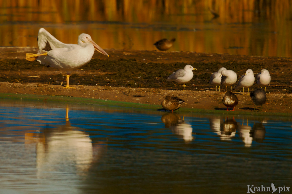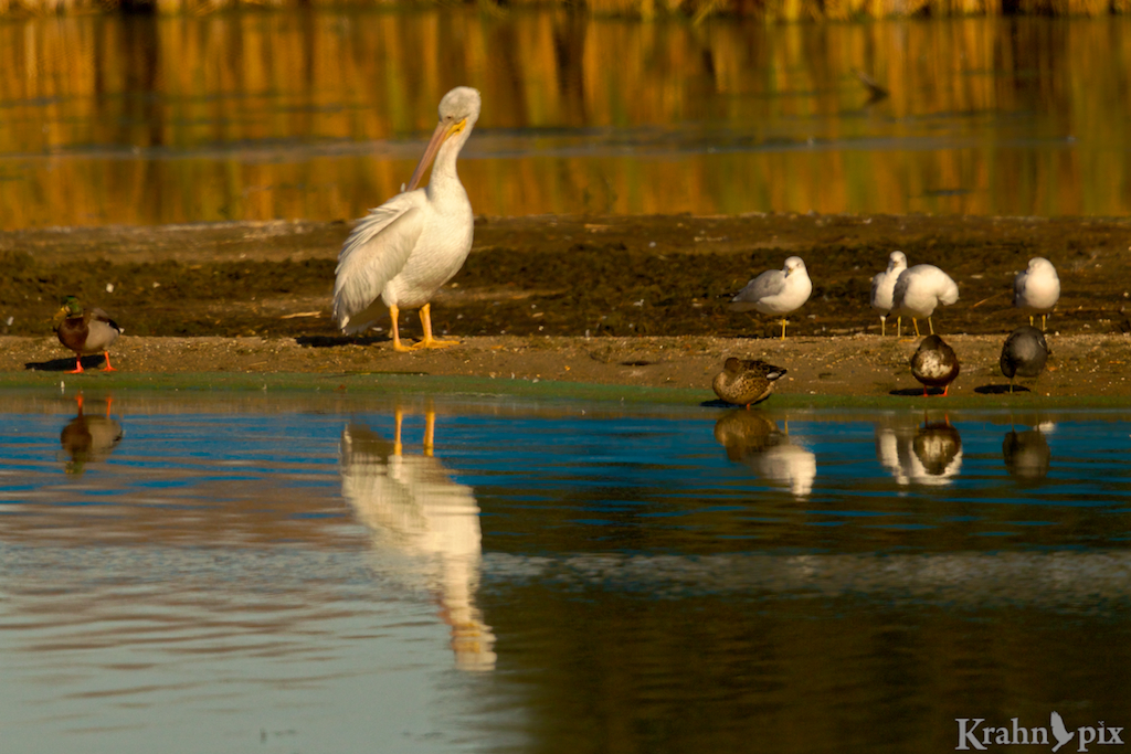 It was fun to finally figure out a story to use the photos. I had never seen one pelican with all these other birds – great afternoon discovery.