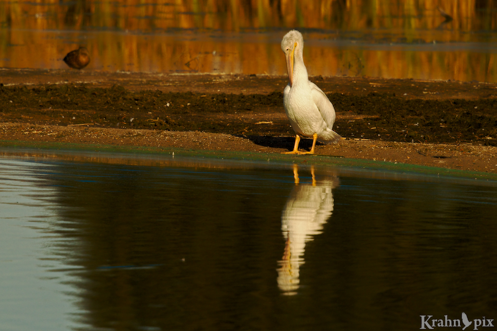 Apparently human athletes don’t have a lock on being a show off. For this slightly vain pelican, it all starts with admiring its reflection.