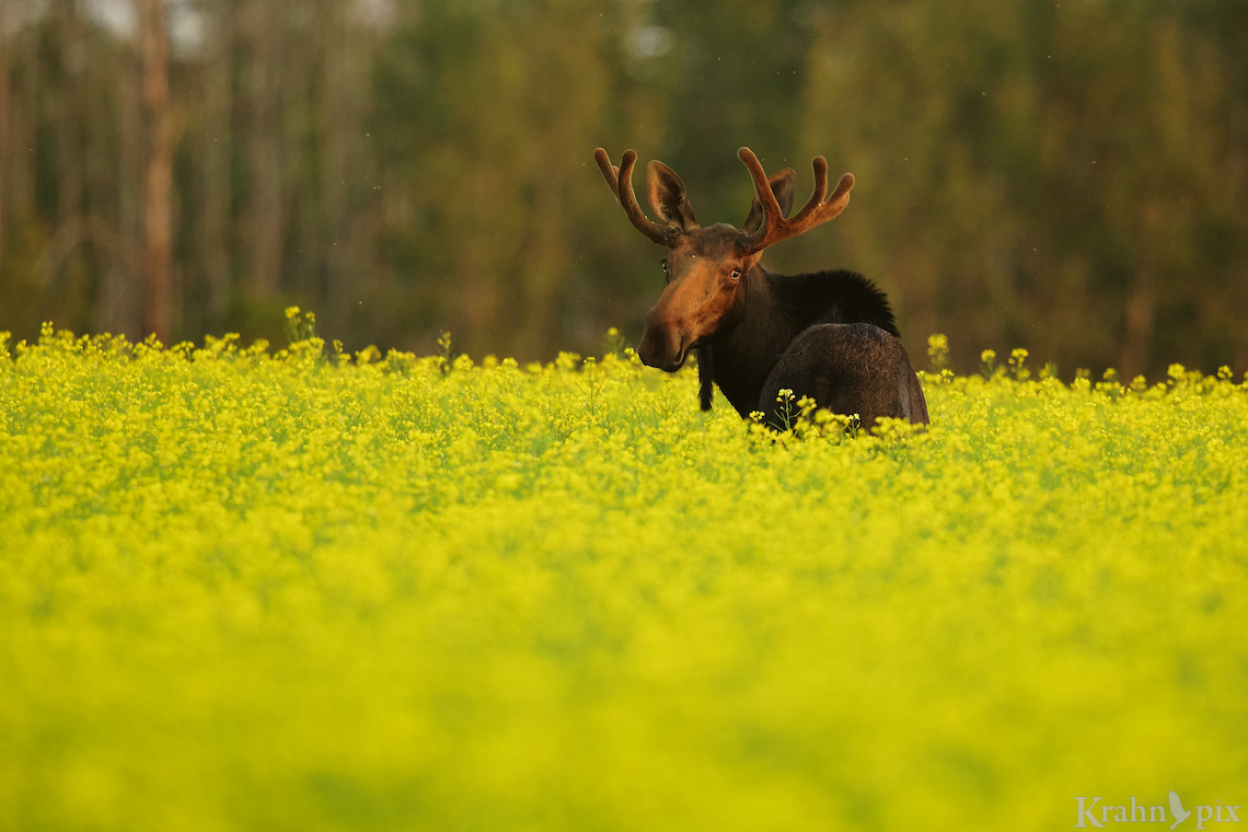 Moose in canola field, now that is something I have never seen before. Your photos are awesome, love all the colour! Reminds me a bit of the photos I just saw on twitter of polar bears in Churchill in fields of fireweed:) That was white and pink, this one yellow and brown.